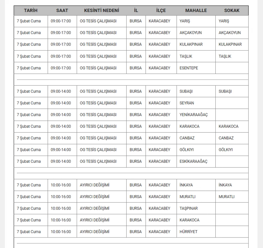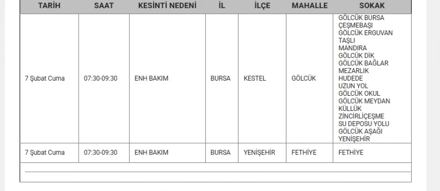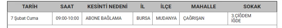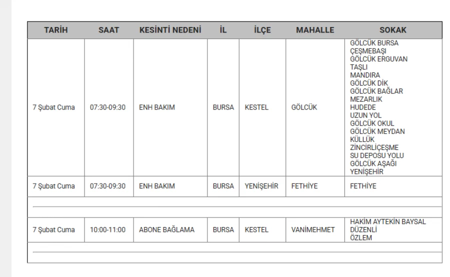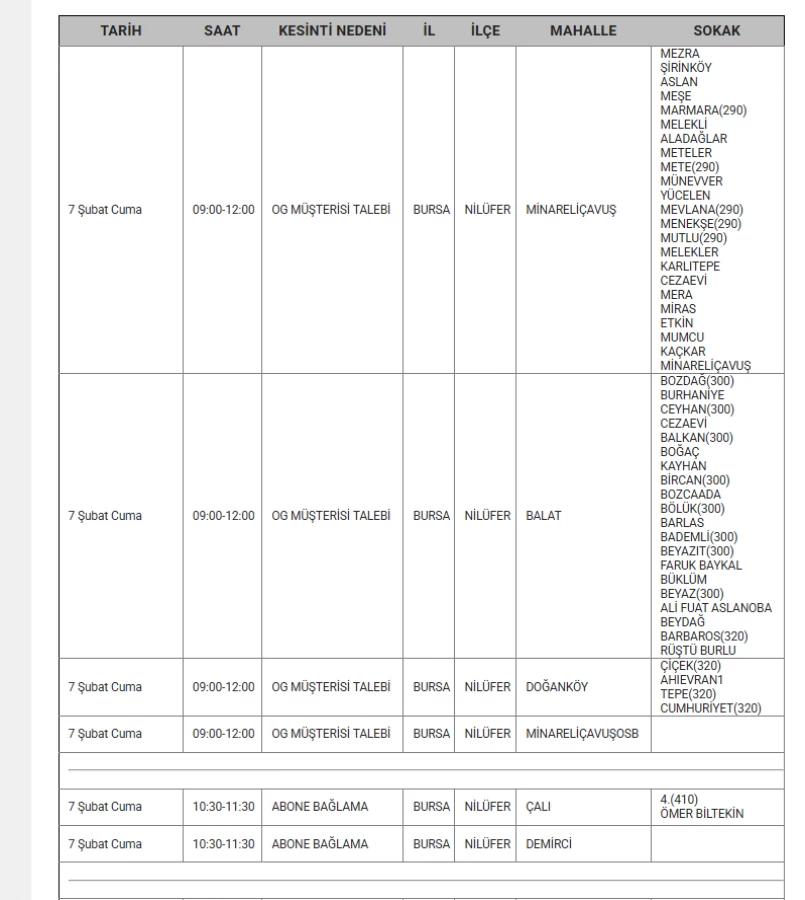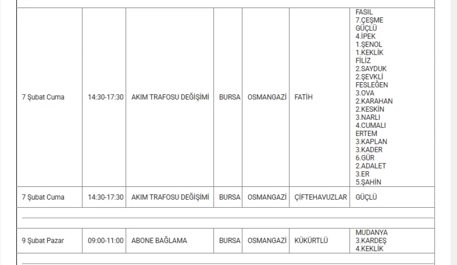 7 Şubat 2025 Cuma günü Bursa'nın 9 ilçesinde planlı elektrik kesintileri yapacak.