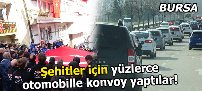 Bursa`da araçlarıyla konvoy yapıp şehit Piyade Uzman Çavuş Tolga Can Yılmaz`ın evinin önüne giden vatandaşlar, şehitler için dua edip İdlib`de düzenlenen saldırıyı kınadı.