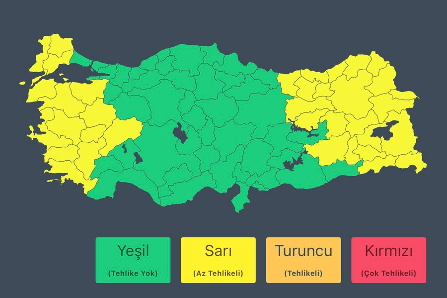 Bakanlığın sanal medya hesabından yapılan açıklamada, "Meteoroloji Genel Müdürlüğü'nden alınan son bilgilere göre; 7 Ocak 2026 Çarşamba günü Trakya kesiminde görülecek sağanak ve gök gürültülü sağanak, öğle saatlerinden sonra Edirne çevreleri ile Kırklareli'nin batısında yerel kuvvetli olması bekleniyor. Kıyı Ege ile zamanla Marmara'nın batısı ve İç Ege'de güney ve batı yönlerden kuvvetli ve fırtına, Marmara'nın güneybatısı ile Ege'nin kuzey kıyılarında yer yer fırtına bekleniyor. Doğu Karadeniz'in iç kesimleri ile Doğu Anadolu'nun kuzey ve doğusunda yüksek kar örtüsüne sahip eğimli alanlarda çığ tehlikesi bulunuyor. Vatandaşlarımızın ani sel, su baskını, yıldırım, yerel dolu yağışı, kuvvetli rüzgar, ağaç ve direk devrilmesi, çatı uçması, soba ve doğal gaz kaynaklı baca gazı zehirlenme riski ile ulaşımda aksamalar gibi olumsuzluklara karşı dikkatli ve tedbirli olmasını; yetkili mercilerin uyarılarını dikkate almalarını önemle hatırlatıyoruz" denildi.