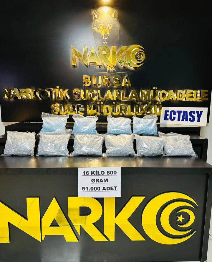 Narkotik Suçlarla Mücadele Şube Müdürlüğü ekipleri, uyuşturucu veya uyarıcı madde ticareti yaptığı belirlenen şahısları yakalayarak gözaltına aldı. Şahısların araçları ve ikametlerinde yapılan aramalarda 51.000 adet ecstasy maddesi ele geçirildi. Konuyla ilgili soruşturma devam ediyor.