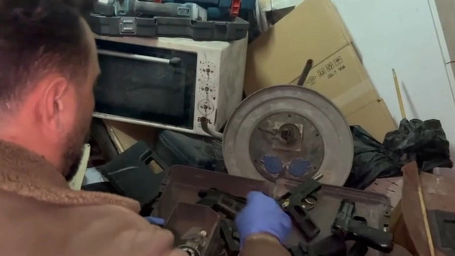 Belirlenen adrese yapılan baskında 5 ruhsatsız tabanca, 14 kurusıkı tabanca, 27 şarjör, çeşitli çaplarda 63 fişek, silah yapımında kullanılan 14 araç gereç ve farklı türlerde 19 silah parçası ele geçirildi.