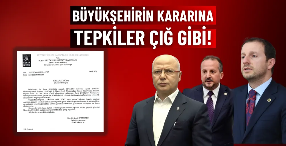 Bursa Büyükşehir Belediyesi, Ulu Cami, 1. Murat Camii, Hüdavendigar Camii, Yeşil Camii, Yıldırım Beyazıt Camii ve Emir Sultan Camii’nin güvenlik hizmetlerinin sağlanması ile ilgili yürütülen protokolü, Cumhurbaşkanlığı’nın 17 Mayıs 2024 tarihli tasarruf tedbirleri genelgesi doğrultusunda 1 Şubat 2025 itibarıyla sonlandırma kararı aldı. Karar sonrası tepkiler çığ gibi büyüdü.