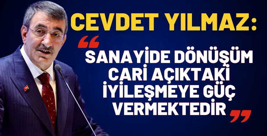 Cumhurbaşkanı Yardımcısı Cevdet Yılmaz, "Sanayide dönüşüm, enerji alanında yaşanan gelişmelerle birlikte, oldukça düşük seviyelere gerilemiş olan cari açığın kalıcı şekilde iyileşmesine güç vermektedir" ifadesini kullandı.