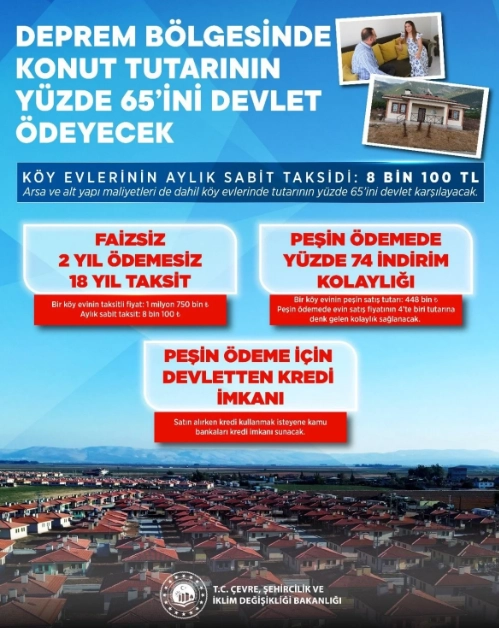 Afet konutlarının altyapı bedellerinin devlet tarafından karşılandığını açıklayan Erdoğan, kalan fiyat üzerinden vatandaşlara yüzde 50 indirim yapıldığını kaydetti. Konut fiyatlarının yüzde 65’inin devlet tarafından ödendiğini belirten Erdoğan, ayrıca 2 yıl boyunca ödeme alınmayacağını ifade etti.