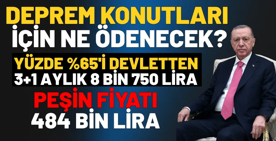 Ödemelerin anahtar tesliminden 2 yıl sonra başlayacağını dile getiren Erdoğan, 3+1 konutlar için 18 yıl boyunca aylık 8 bin 750 lira sabit taksit uygulanacağını söyledi. Erdoğan, peşin ödeme yapmak isteyenler için Meclis’te düzenleme yapılacağını da açıkladı.