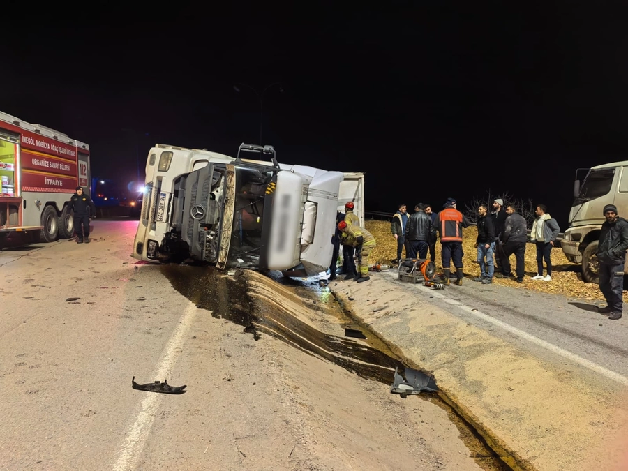 Yağmur suyu kanalına düşen araç devrilirken, kazanın etkisiyle sürücü TIR’dan savruldu. Dorsenin altında kalan Aydın, araç içerisinde sıkıştı. Kaza nedeniyle yol trafiğe kapanırken bölgede uzun araç kuyrukları oluştu.