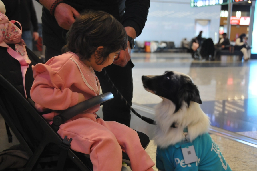 İstanbul Havalimanında görev yapan uçuş öncesi, endişe, stres yaşayan yolcuların korkularını yenmesini sağlayan terapi köpekleri ise çocukların büyük ilgisini çekti. Uçuş öncesi stres, endişe ve korku yaşayan yolcular, Havalimanı İşletmecisi İGA tarafından uygulamaya konulan terapi köpeklerini severek rahatlıyor.