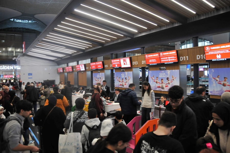Milyonlarca öğrencinin karnelerini almasının ardından yarıyıl tatilini yurt içi ve yurt dışında geçirmek isteyenler dolayısıyla bugün İstanbul Havalimanı'nda yolcu yoğunluğu yaşandı. Günlük yolcu hareketliliği, bugün yarıyıl tatiline çıkanlar ve umre kafileleri nedeniyle iki kat arttı. Terminale giriş noktalarında, check-in kontuarları ve pasaport kontrol noktalarında kuyruk oluşmaması ve mağduriyet yaşanmaması için yetkililer tarafından gerekli önlemler alındı. Yarıyıl tatilini ailesiyle birlikte değerlendireceğini ifade eden 3'üncü sınıf öğrencisi Lina Ziyenek, "Karnem çok güzel. Tatili ailemle birlikte Mardin'de geçireceğiz, orada arkadaşlarımla oyunlar oynayacağım" dedi. 6'ncı sınıf öğrencisi Muhammed Ziyenek ise, "Benim için yarı yıl çok iyi geçti. Derslerim çok iyi. 6'ncı sınıf olduğum için öğretmenlerimle de aram çok iyi" dedi.