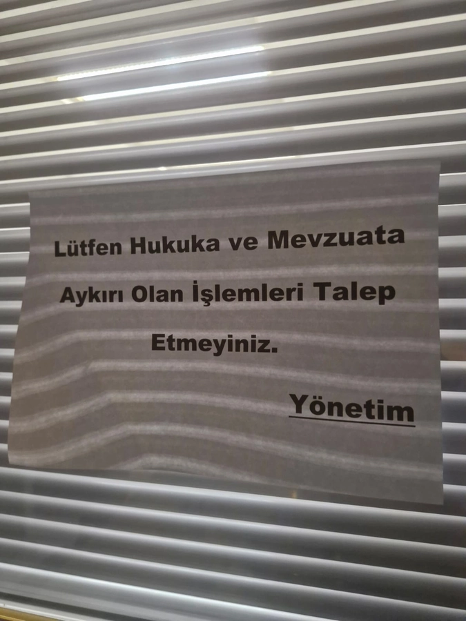 Ayrıca odaya girmeden “Lütfen hukuka ve mevzuata aykırı olan işlemleri talep etmeyin” ifadeli uyarıyı yazısını görüyorsunuz.
