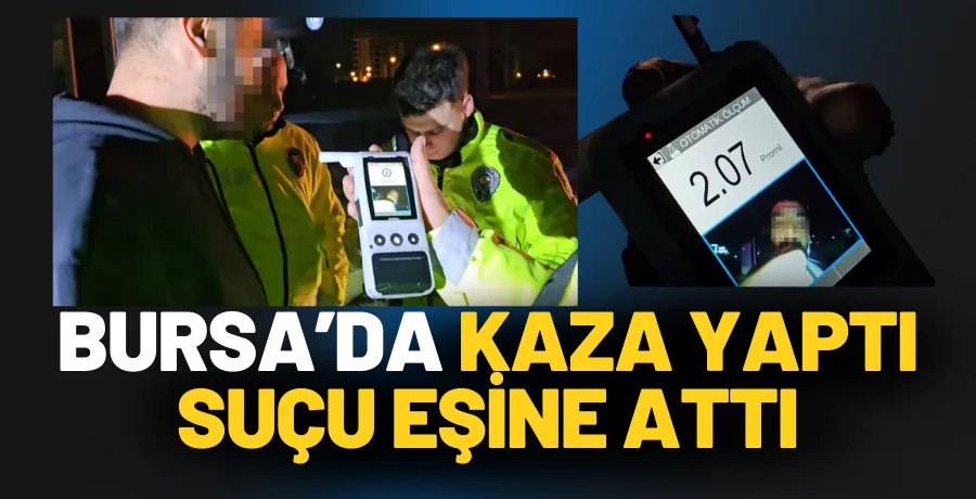 Bursa’nın Nilüfer ilçesinde kontrolden çıkan otomobil bariyerlere çarptı. Kazada sürücünün eşi yaralanırken, sürücünün 2.07 promil alkollü olduğu belirlendi. Sürücü, yaptığı açıklamada kazayı eşine bağladı: "Eşimle kavga ettik, direksiyonu kırdı, kaza yaptık" dedi.