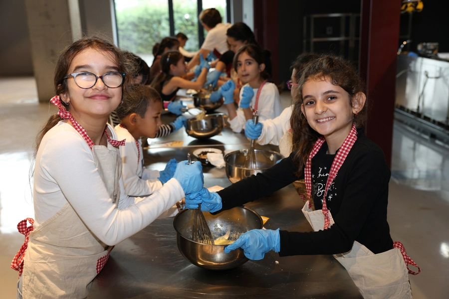 “Çocuklar Depoda” etkinliği kapsamında dört farklı atölye gerçekleştirildi. Mutfak Atölyesi’nde küçük şefler önlüklerini giyip çikolatalı kurabiye yaptılar.