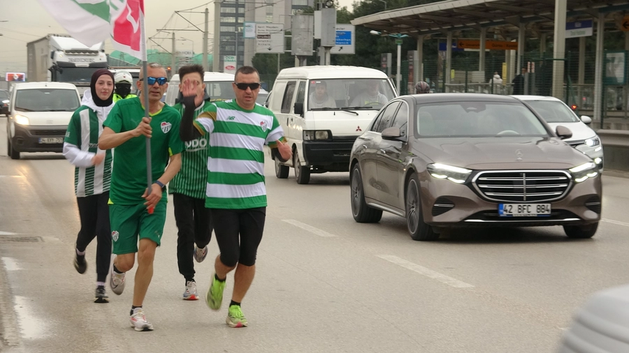 BURSASPOR taraftarı 4 genç, 14 Şubat Sevgililer Günü’nde “Sevgiliye koşuyoruz” sloganıyla anlamlı bir etkinliğe imza attı. Timsah Arena Stadyumu’nda buluşan taraftarlar, 4 metrelik Bursaspor bayrağıyla İbrahim Yazıcı Özlüce Tesisleri’ne kadar 10 kilometre koştu.